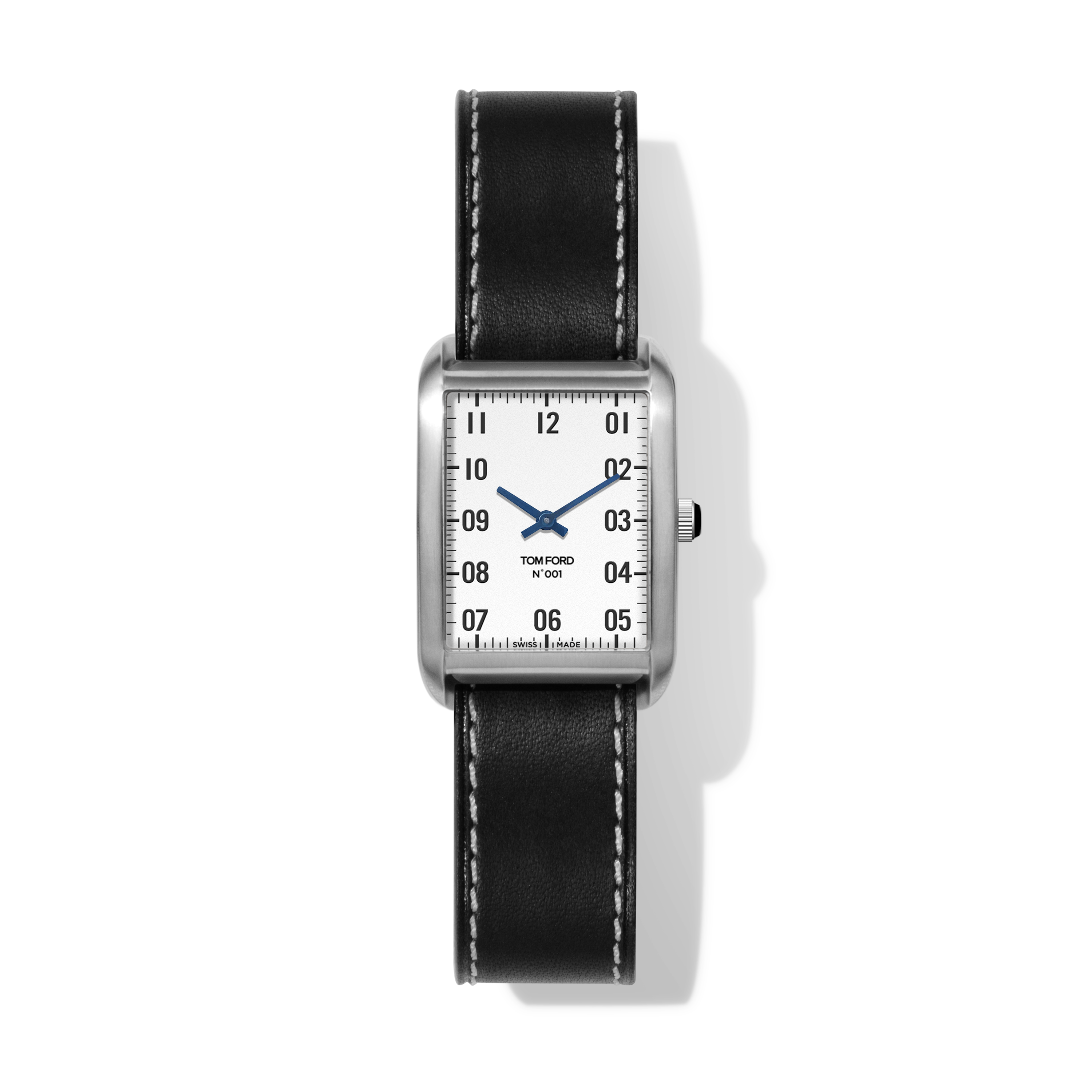 The Tom Ford 001 has 31 interchangeable leather strap options, allowing you to customize the watch to match your outfit and occasion quickly and easily. In addition, it comes in an 18-karat gold case, and a stainless steel option that comes in three finishes, polished, brushed, or black. Underneath the dial is a quartz movement from the Bedrock Manufacturing Company.